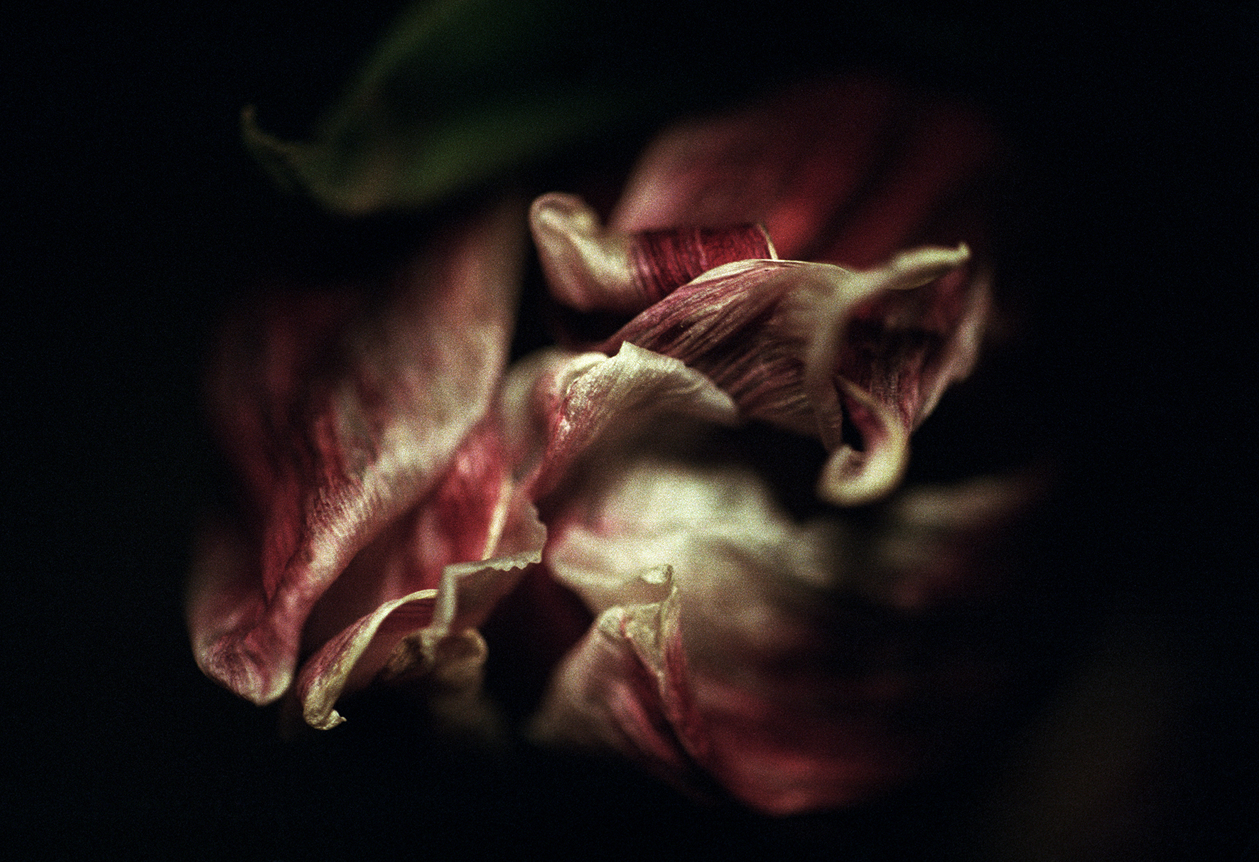 Perfectionniste jusqu’au bout de l’objectif, Marie travaille en macro et en argentique et le résultat est tout simplement bluffant : des fleurs comme autant de personnages dont on devine la moindre substance, le moindre filament organique, la plus petite des failles, la plus grande des splendeurs. Des décrépitudes sublimées, colorées, odorantes. Des tissus floraux de velours, de perle et de soie. On frôle ici le sublime. De fait, si photographier lui coupe « son » souffle, regarder ses photos coupera le vôtre.